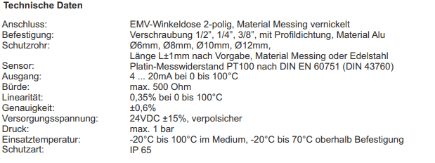 - Engler Steuer 溫度傳感(gǎn)器 PT100-6L