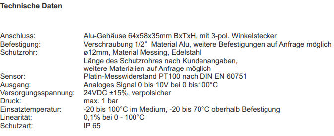 - Engler Steuer 溫度傳感器(qi) PT100-10L