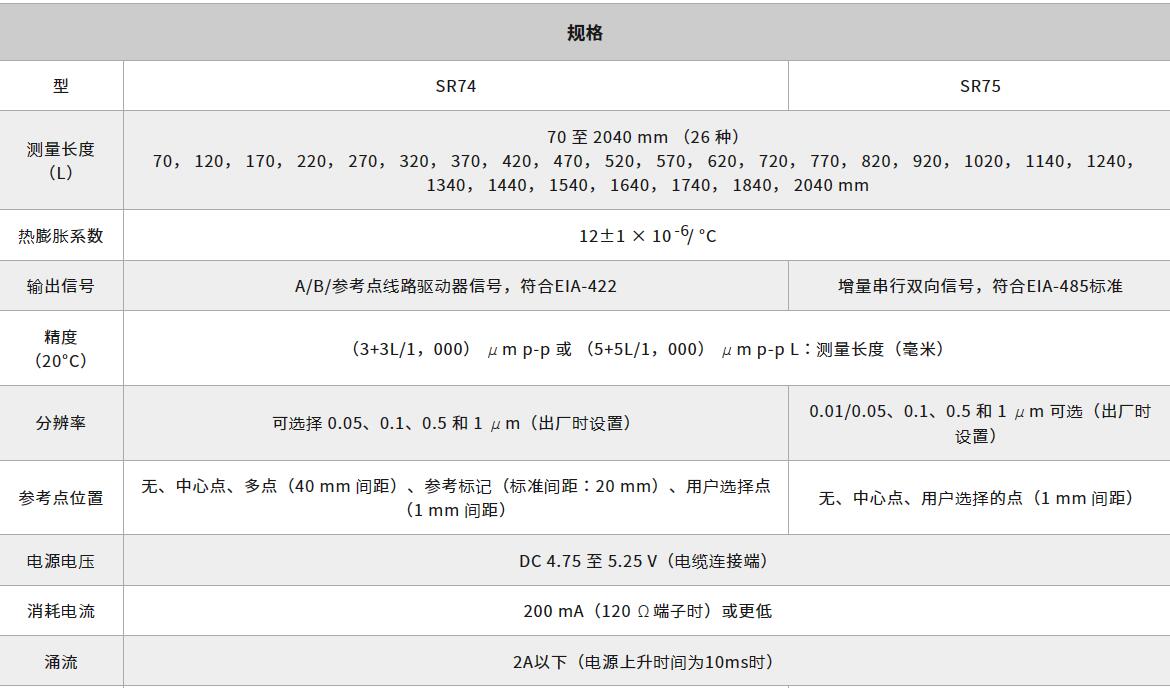 Magnescale 線(xian)性編碼(ma)器 SR74 / SR75産品(pin)參數:這(zhè)種超薄(báo)型磁栅(shan)尺系統(tǒng)可為機(jī)床和其(qi)他需要(yao)高精度(du)定位🌈的(de)設備輸(shu)出位置(zhì)信号。最(zui)高分辨(bian)率 : 0.01 μm(SR75:三菱(líng)電機), 0.05 μm(SR74)精(jīng)度(20°C時) : (3+3L/1,000) μm p-p 或(huò) (5+5L/1,000) μm p-p測量長(zhǎng)度(ML) : 70 至 2,040 mm最(zui)大響應(ying)速度 : 200 米(mi)/分鐘 (SR75), 50 米(mǐ)/分鐘 (SR74: 分(fen)辨率: 0.1 μm, 最(zui)小相位(wei)差 : 50 ns)協議(yì)(SR75):三菱電(dian)機,松下(xià),安川電(diàn)機輸出(chū)信号 (SR74):A/B/參(can)考點線(xian)路驅動(dòng)器信号(hao),符合 EIA-422增(zēng)量串行(hang)雙向信(xin)号,符合(hé)EIA-485(SR75)