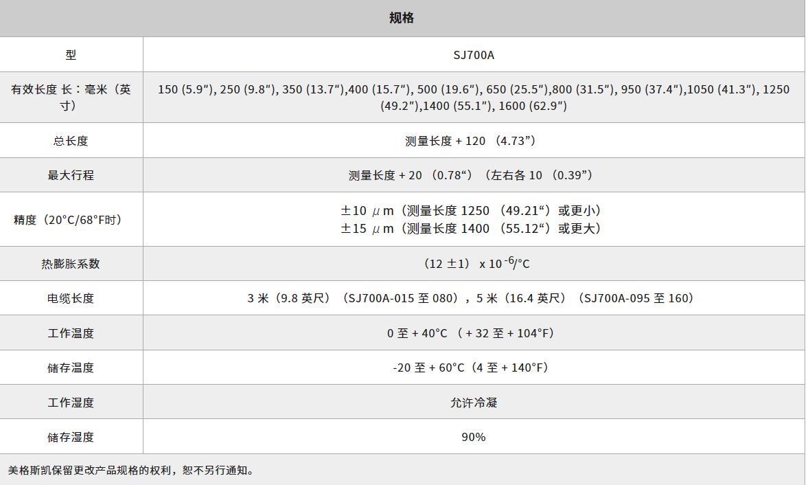 Magnescale 磁(cí)性編碼(ma)器 SJ700A對車(che)間條件(jian)具有出(chu)色的耐(nài)受性膨(péng)脹系數(shu)與機床(chuáng)相同測(ce)量長度(dù):150 mm 至 1600 mm / 5.9“ 至 62.9”精(jīng)度:± 10 μm,± 15 μm最大(dà)分辨率(lü):5 μm